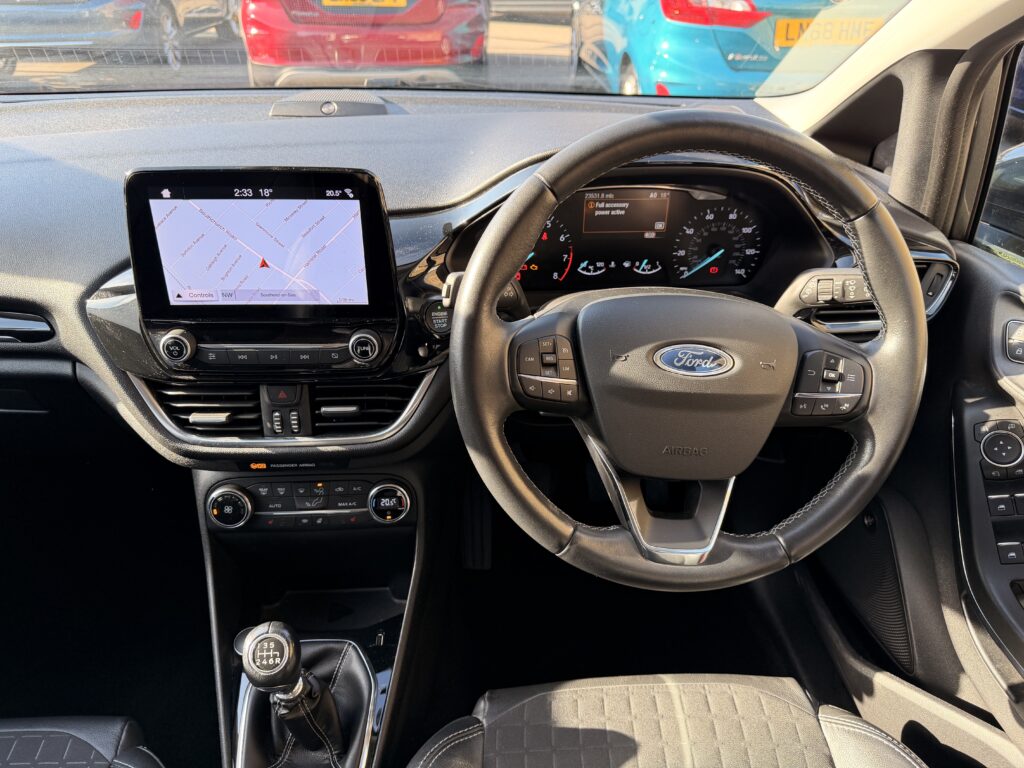 Leather interior including heated seats and steering wheel, SYNC3 navigation 8in touchscreen including Bluetooth, B&O play premium audio system, quick clear screen , power fold heated mirrors including puddle lights , climate control air condition , 16in alloy wheels , ambient lightning , electric windows , cruise control.