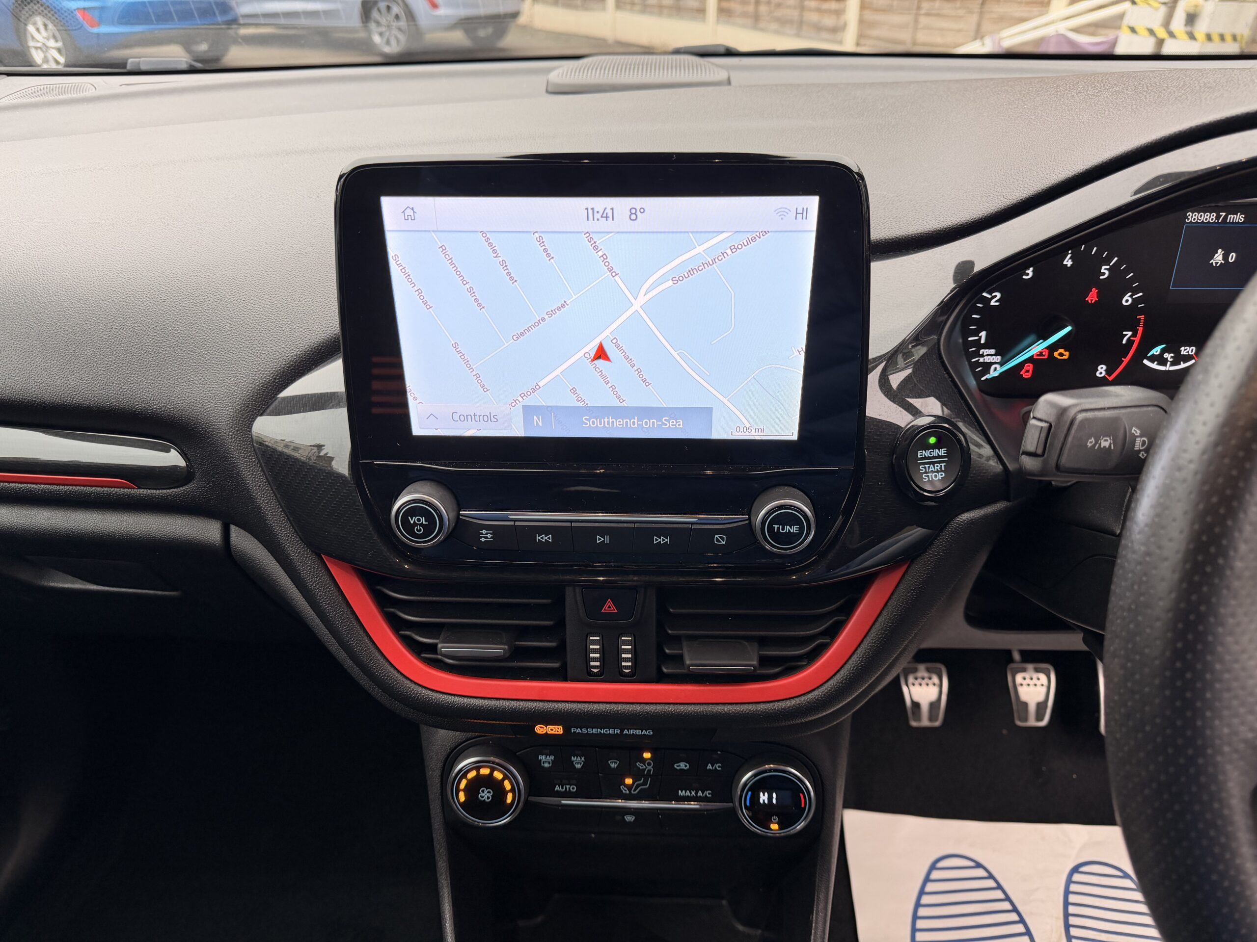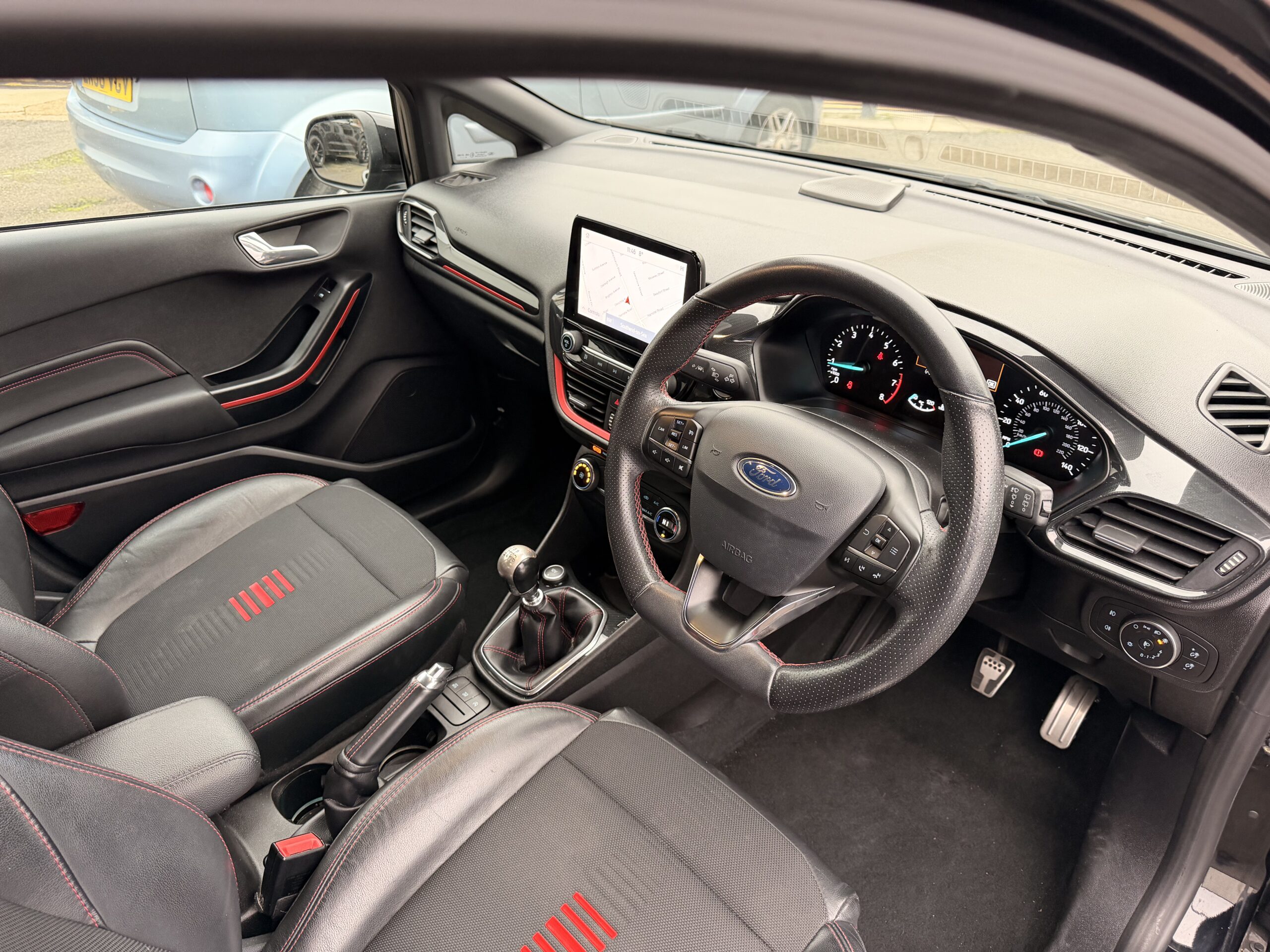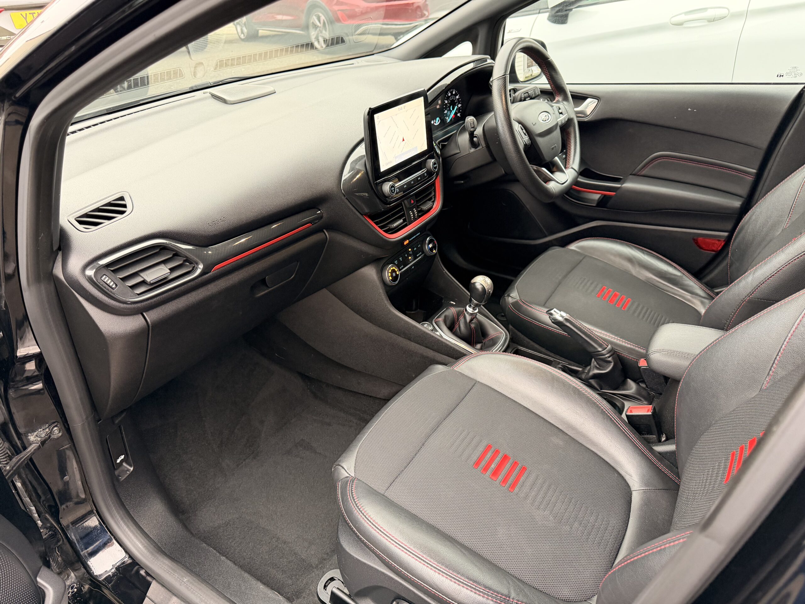 SYNC 3 8in touchscreen including Sat navigation, Bluetooth, quick clear screen , air condition power fold heated mirrors including puddle lights , 17in rock metallic alloy wheels , parking sensors, ambient lighting plus all ST features